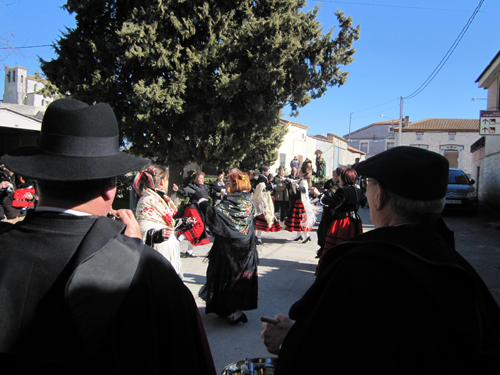 Con la alegría de las jotas interpretadas por los dulzaineros, la procesión baja la empinada escalera de la Iglesia hasta las calles del pueblo, donde mujeres de diferentes edades y un interesante grupo de niñas, bailamos jotas delante de la imagen de Santa Águeda en todo el recorrido por las calles de nuestra localidad. El cortejo vuelve a la iglesia un poco cansado por el esfuerzo del baile y la “dichosa escalerita” que, dicho sea de paso, hace que nuestra iglesia destaque en todo el entorno.